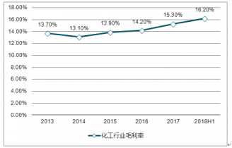 2013-2018年中國化工行業(yè)毛利率走勢