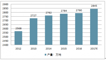 全球菜籽油的產(chǎn)量緩慢增長(zhǎng),2012到2016年,全球菜籽油產(chǎn)量的年均復(fù)合增長(zhǎng)率為2.09%。2016年,全球菜籽油產(chǎn)量為2790萬(wàn)噸,預(yù)計(jì)2017年菜籽油產(chǎn)量將超過(guò)2800萬(wàn)噸。