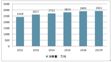 2012到2016年,全球菜籽油消費量呈穩(wěn)定增長的趨勢,2016年,中國菜籽油需求量達到810萬噸,全球菜籽油消費量突破2900萬噸。