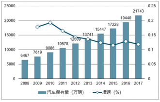 2008-2017年中國(guó)汽車保有量及增速