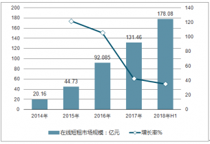 2014-2018年中國在線短租市場規(guī)模及增長率走勢
