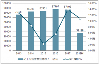 2018年上半年,我國化工行業(yè)規(guī)模以上企業(yè)實現(xiàn)主營業(yè)務(wù)收入37196億元,上年同期主營業(yè)務(wù)收入為33553億元,同比增長10.9%。