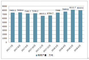 2017-2018年6月中國(guó)粗鋼產(chǎn)量情況