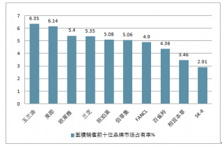 中國(guó)面膜銷售前十位品牌市場(chǎng)占有率統(tǒng)計(jì)
