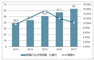 2013-2018年全球面膜行業(yè)市場(chǎng)規(guī)模及同比增長(zhǎng)走勢(shì)