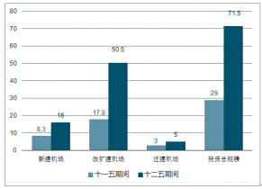 “十一五”和“十二五”期間中國智慧機場投資規(guī)模(單位:億元)