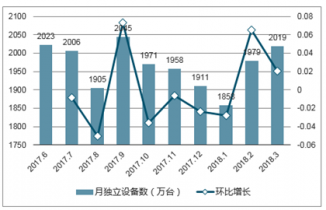 2019年一季度網絡婚戀交友服務移動端月獨立設備數依次為1858萬臺、1979萬臺和2019萬臺,從整體來看,月獨立設備數保持小幅穩定增長。未來隨著網絡婚戀移動端服務的逐漸成熟,月獨立設備數將保持進一步增長。