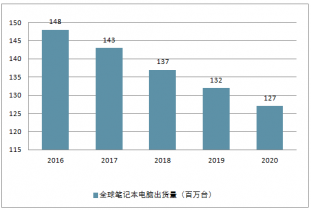 2016-2020年全球筆記本電腦出貨量(百萬臺)
