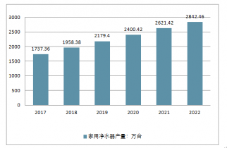 2017-2022年家用凈水器產量預測(單位:萬臺)