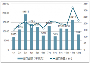 2018年1-6月中國載客電梯進(jìn)口數(shù)量為1276臺,同比增長14.7%。2018年1-6月中國載客電梯進(jìn)口金額為62085千美元,同比下降13.8%。