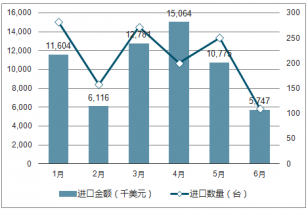 2018年1-6月中國載客電梯進(jìn)口數(shù)量及進(jìn)口金額走勢