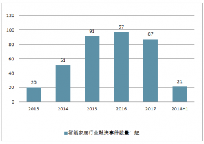 2013-2018年中國智能家居行業(yè)融資事件數(shù)量