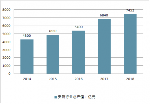 2014-2018年中國(guó)安防行業(yè)總產(chǎn)值走勢(shì)