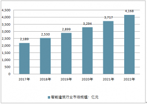 2017-2022年我國(guó)智能建筑行業(yè)市場(chǎng)規(guī)模預(yù)測(cè)(單位:億元)