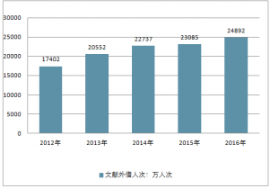 2016年公共圖書館文獻外借人次24892萬人次,增長43%。