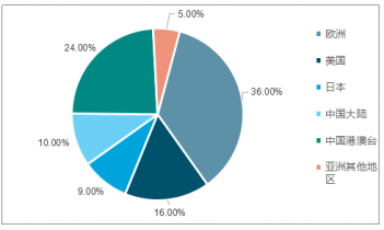 2017年,歐洲、中國港澳臺地區(qū)為全球第.一、二大奢飾品市場,銷售金額比重分別占36%、24%;同時,美國、中國大陸的奢飾品銷售額在全球范圍內(nèi)也達到了10%及以上。