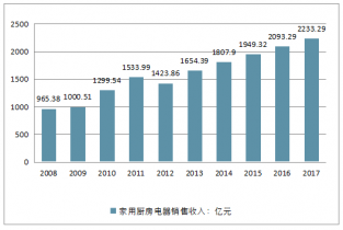 2017年,中國(guó)家用廚房電器的市場(chǎng)規(guī)模為2233億元,同比增長(zhǎng)6.69%;商用廚具市場(chǎng)規(guī)模達(dá)到573億元,同比增長(zhǎng)率達(dá)到3.17%。