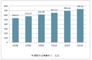 2018-2023年櫥柜行業(yè)銷(xiāo)售收入預(yù)測(cè)(單位:億元)