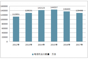 2012-2017年中國電話機(jī)出口數(shù)量走勢