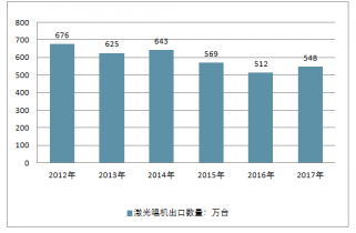 2012-2017年中國激光唱機(jī)出口數(shù)量走勢