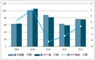 20092017年中國(guó)重卡汽車產(chǎn)銷差情況