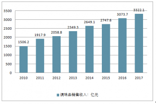 2010-2017年調(diào)味品行業(yè)銷(xiāo)售收入走勢(shì)