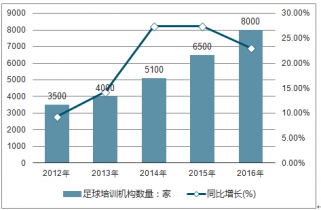 2012-2016年這個(gè)足球培訓(xùn)機(jī)構(gòu)數(shù)及增長