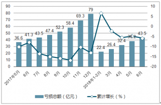 2018年1-6月飲料行業(yè)虧損總額及累計增長走勢情況