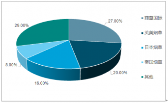 菲莫國際、英美煙草、日本煙草和帝國煙草是全球四大煙草巨頭。2016年全球(不包含中國)煙草市場(chǎng)中,菲莫國際、英美煙草、日本煙草和帝國煙草的市場(chǎng)占有率分別為27%、20%、16%和8%,四大巨頭的占有率合計(jì)達(dá)到71%,幾乎壟斷了除中國以外的煙草市場(chǎng)。除此以外,還有雷諾煙草、奧馳亞等區(qū)域性品牌。隨著英美煙草對(duì)雷諾煙草的收購,四大巨頭的占有率仍將繼續(xù)提升。