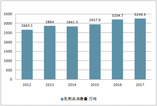 2012-2017年中國乳制品消費(fèi)量走勢