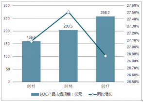 2015-2017年中國(guó)SOC產(chǎn)品市場(chǎng)規(guī)模走勢(shì)