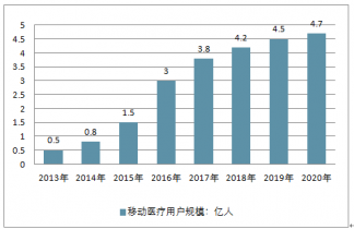 2013-2020年中國移動醫(yī)療用戶規(guī)模走勢