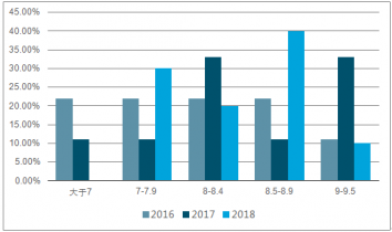 近三年國慶檔新上映影片貓眼評分分布