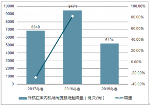 國(guó)內(nèi)航空公司在國(guó)內(nèi)機(jī)場(chǎng)周度航班起降量(班次/周)
