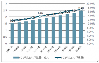 2007-2020年我國60歲以上人口數(shù)及比重情況(單位:億人,%)