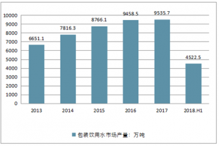 2013-2018年上半年中國(guó)包裝飲用水產(chǎn)量走勢(shì)