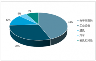 電容器用途廣泛、用量最大,約占全部電子元件用量的40%,而鋁電解電容器因性能較好而價格低廉、用途廣泛。下游需求領(lǐng)域主要有消費類電子產(chǎn)品、通訊、汽車、工業(yè)設(shè)備等,其中消費類電子產(chǎn)品是最鋁電解電容器主要運用市場,其占總電解電容器消費量約44%;其次是工業(yè)設(shè)備,主要包括各類變頻設(shè)備,占比約為30%;通訊領(lǐng)域占比約13%、汽車領(lǐng)域占比約5%;資訊等其他領(lǐng)域占比約8%。未來電容器向兩極發(fā)展方向。一個是家用電器上小型化、片式化。另一個是工業(yè)上大型化。體積更大,電容越大,電壓更高。