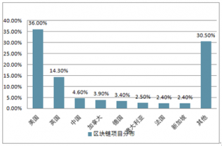截止2019年2月,全球區塊鏈項目合計1286個,其中美國占36.0%,排名第.一;英國項目占比14.3,排名第二;中國僅占4.6%,據全球第三位。
