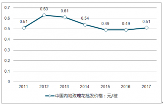 2011-2017年中國(guó)內(nèi)地玫瑰花批發(fā)價(jià)格走勢(shì)