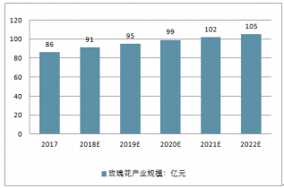 2017-2022年中國(guó)玫瑰花產(chǎn)業(yè)規(guī)模走勢(shì)
