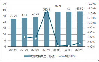 2011-2017年中國(guó)玫瑰花銷售量及增長(zhǎng)走勢(shì)