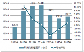 2011-2017年中國(guó)玫瑰花種植面積及增長(zhǎng)走勢(shì)