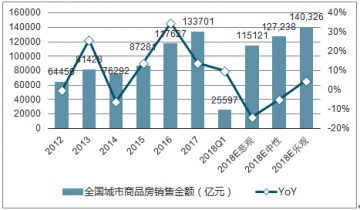 2019年全國(guó)城市商品房銷售金額及增速展望