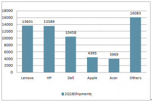 2018第三季度全球個(gè)人電腦銷量市場(chǎng)占比