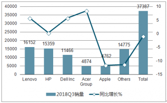 2018第三季度全球個(gè)人電腦銷量及同比增長(zhǎng)