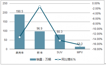 2019年9月轎車、SUV、MPV銷量及同比增長(zhǎng)情況