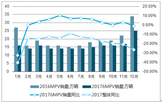 2016-2017年中國(guó)MPV銷(xiāo)量及同比走勢(shì)