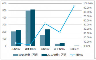 2017年中國SUV細(xì)分市場(chǎng)銷量及增速