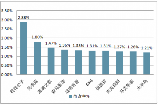 2017年天貓男裝品牌銷售排行TOP10市占率
