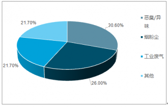2017年舉報污染類型占比大氣污染方面,反映惡臭/異味污染最多,占涉氣舉報的30.6%,其次為反映煙粉塵及工業(yè)廢氣污染,分別占涉氣舉報的26.0%和21.7%;噪聲污染方面,反映建設(shè)施工和工業(yè)噪聲較多,分別占噪聲舉報的49.0%、26.6%;水污染方面,反映工業(yè)廢水污染的最多,占涉水舉報的51.1%。